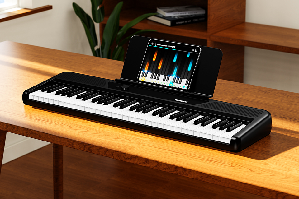 全新一代AI智能電子琴,專(zhuān)為初學(xué)者打造,沒(méi)有音樂(lè)基礎(chǔ)跟著APP學(xué)就能輕松上手,輕巧纖薄的琴身,采樣自三角鋼琴的音色和全新的音響系統(tǒng),以及舒適的手感,給你更好的學(xué)琴體驗(yàn)。 |